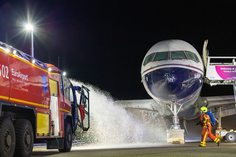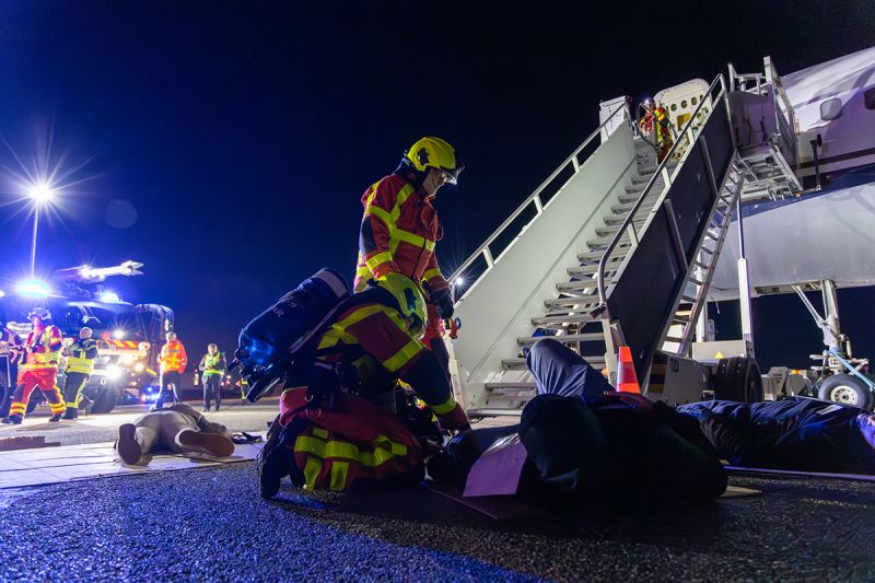 Dans la nuit du mardi 18 au mercredi 19 novembre à l’EuroAirport Bâle-Mulhouse s’est déroulé un exercice ORSEC NOVI (NOmbreuses VIctimes) ayant pour scénario une chute d’aéronef civil sur une piste de l’aéroport.