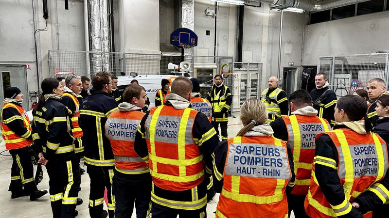 Cet exercice de grande ampleur a rassemblé 109 sapeurs-pompiers et 2 PATS du SIS 68 et de CPI ainsi que de nombreux personnels de services partenaires dont le corps préfectoral, le SAMU, les Forces de l’Ordre, les associations agréées de sécurité civile, la direction de l’aéroport, son SSLIA et la REGA.